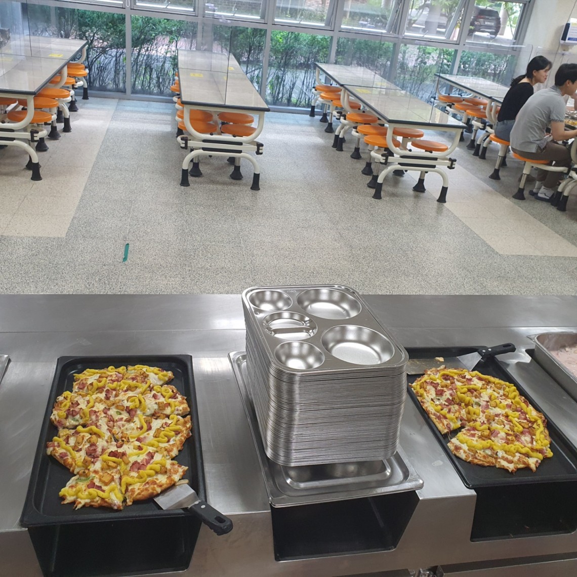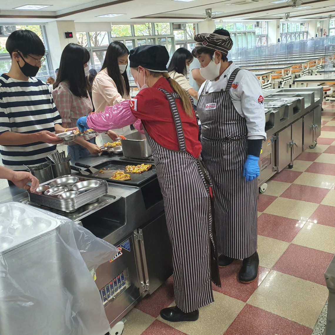 00 고등학교 중식에 맛있는 피자 즉석으로 만든피자 제공으로 학생들 대만족