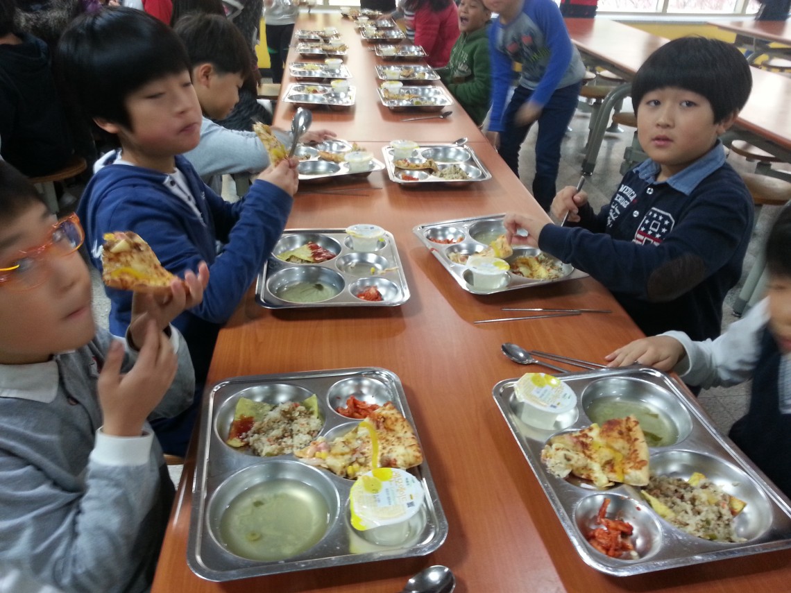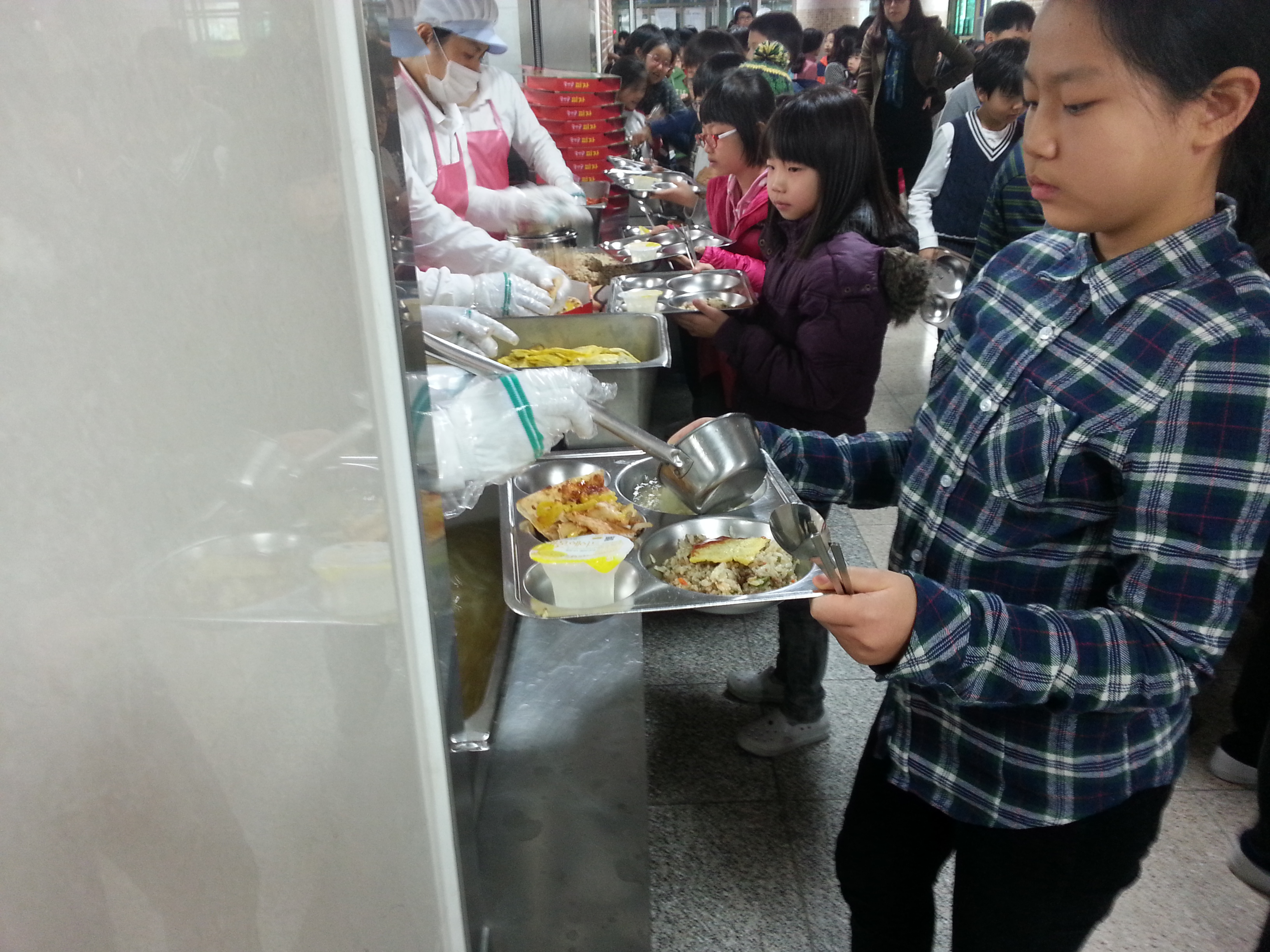 학교피자 급식배식장면